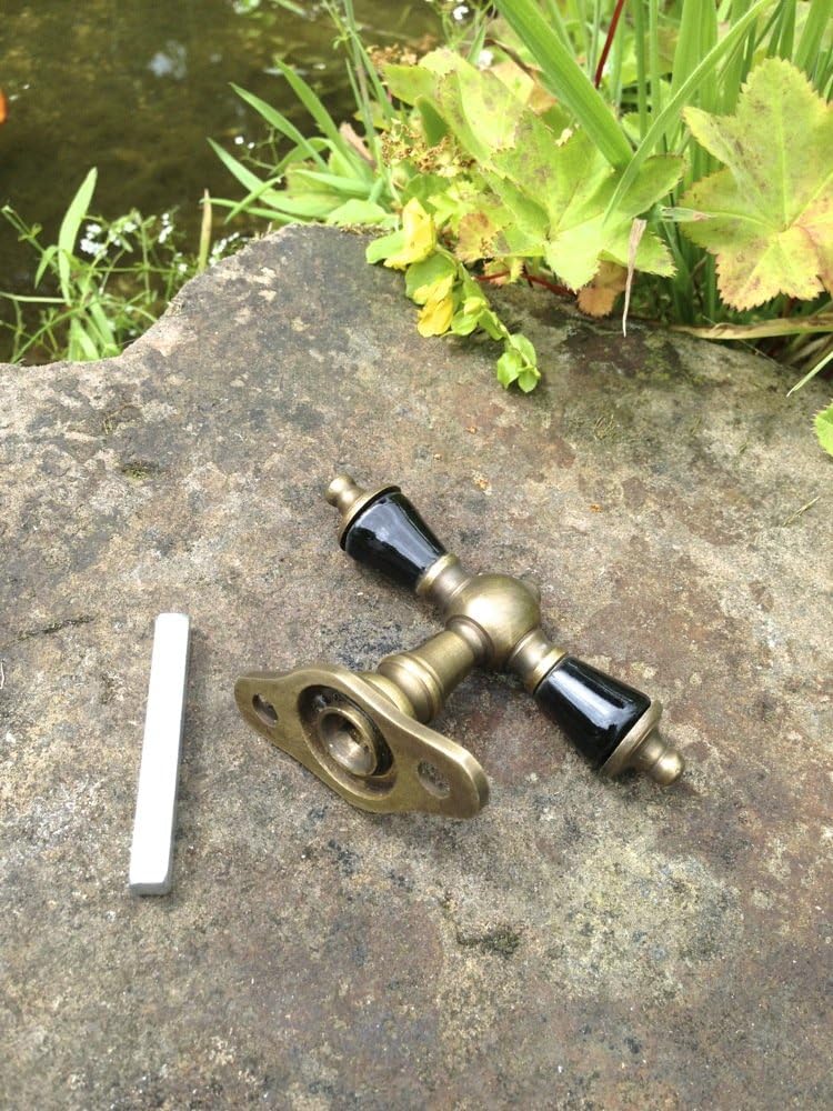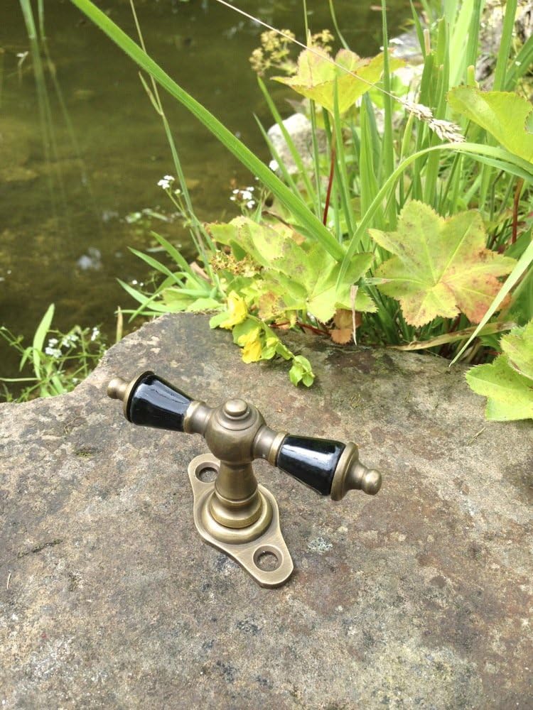 Antikas - Fensterolive Messing, antike Fensterbeschläge, nachgefertigt Porzellan schwarz