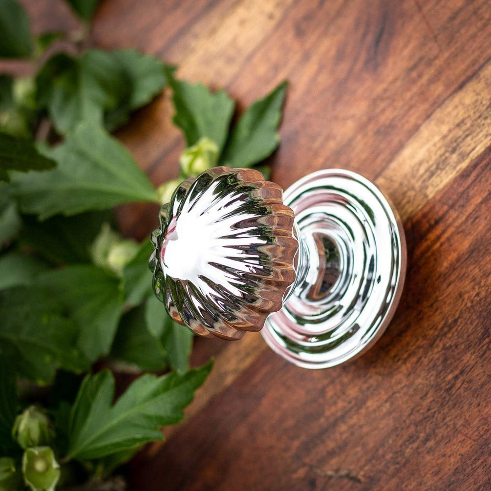 Antikas - Feststehender Türknauf mit Rosette, Türdrücker aus polierten Chrom, wie antik