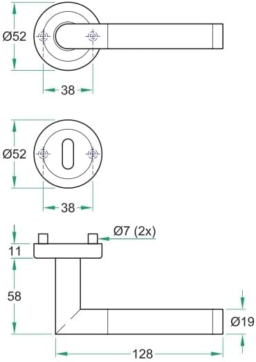 Aperit 49.340.02 Türbeschlag Modell SAVONA - Edelstahl Drücker Paar auf Rosetten 52mm mit Buntbart R
