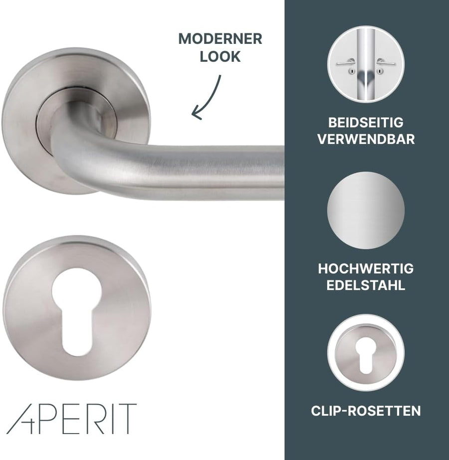 Aperit Türgriff: Edelstahl Türklinke mit PZ Rosetten - Drückergarnitur für Innentüren - L-Modell - E