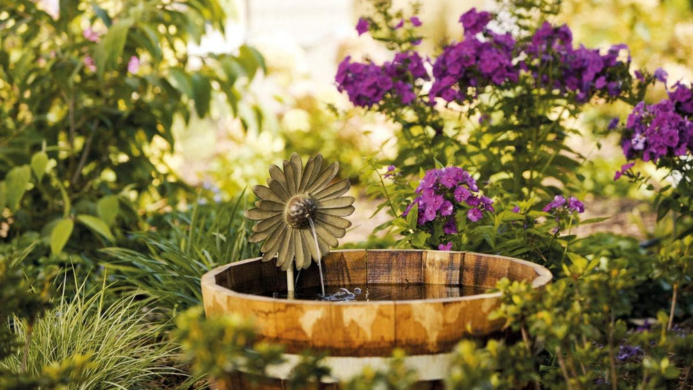 AQUANIQUE Speier Set Gänseblümchen pink SSDW 200i (200 l/h) | Wasserspiel | Wasserspeier aus Metall