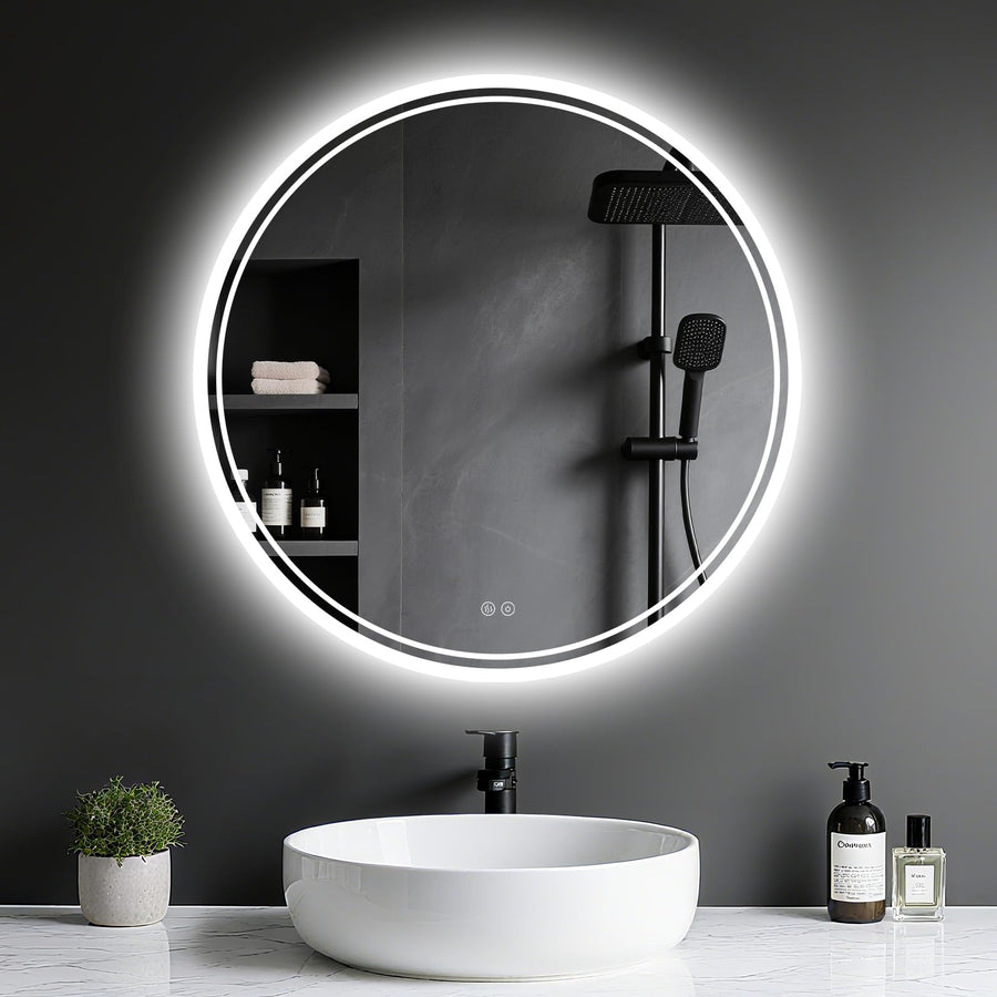 Badspiegel mit Beleuchtung - LED-Badezimmer-Spiegel-Round 60cm,Touch-Schalter,Dimmbar,3 Lichtfarben,