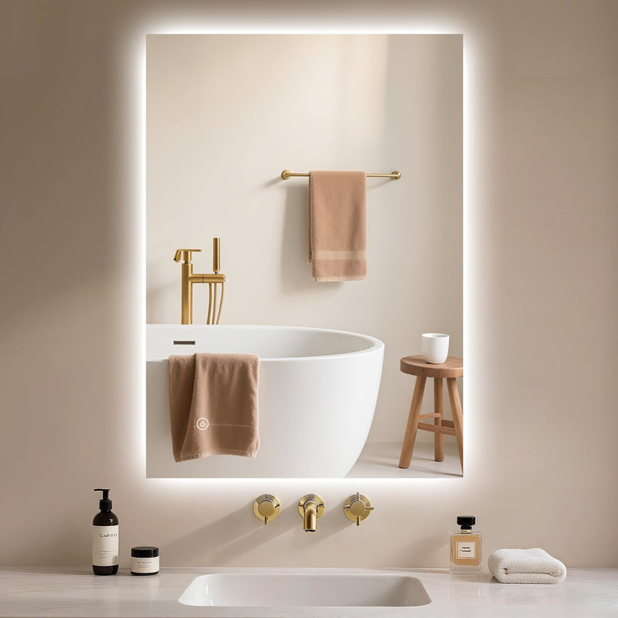 Badspiegel mit Beleuchtung 40x60cm - Badezimmer-Spiegel-LED - Badezimmerspiegel mit Beschlagfrei Tou