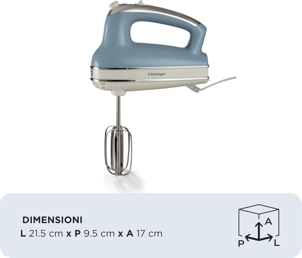 Ariete 1548 Handmixer Vintage, 450 W, 5 Geschwindigkeiten, Turbo-Funktion, 2 Schneebesen, hellblau