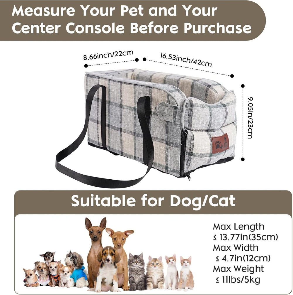Arkyomi Hunde autositz,Mittelkonsole für Hunde Katzen,kleine Stabiler hundeautositz mit Gurt,Abnehmb