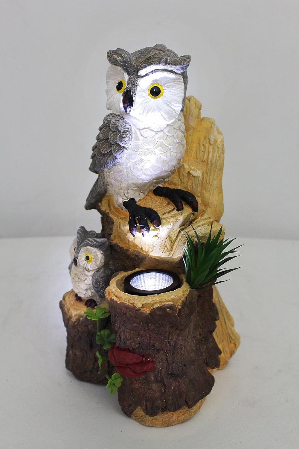 Solar Gartenfigur Eule Solarleuchte Tierfigur Gartendekoration 36 cm Baumstamm Solarlampe Dekofigur
