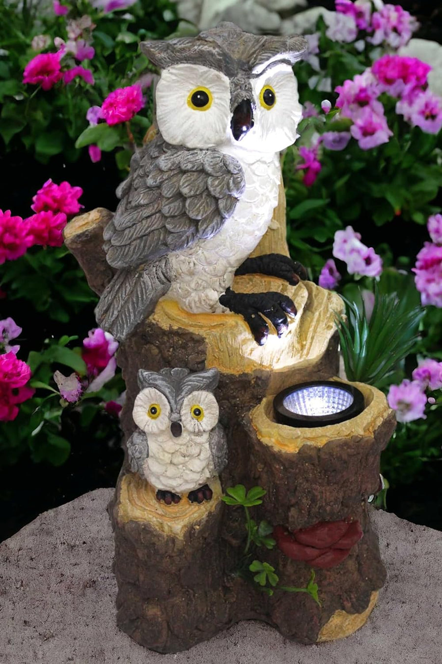 Gartenbrunnen Eule mit LED-Beleuchtung Springbrunnen Terrassenbrunnen Wasserspiel Zimmerbrunnen