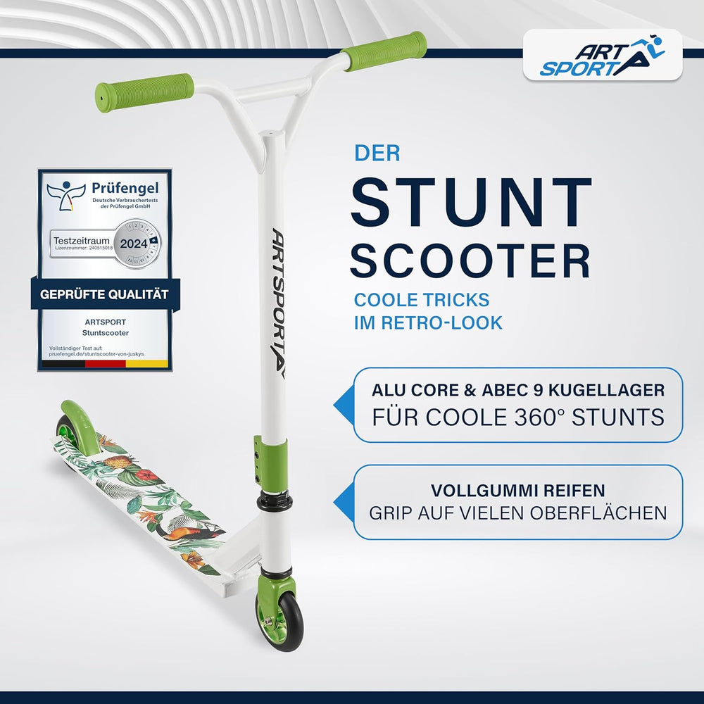 ArtSport Stunt Scooter mit 360° Lenkung, ABEC 9 Kugellager, 100 mm PU Räder & Griptape, Funscooter f
