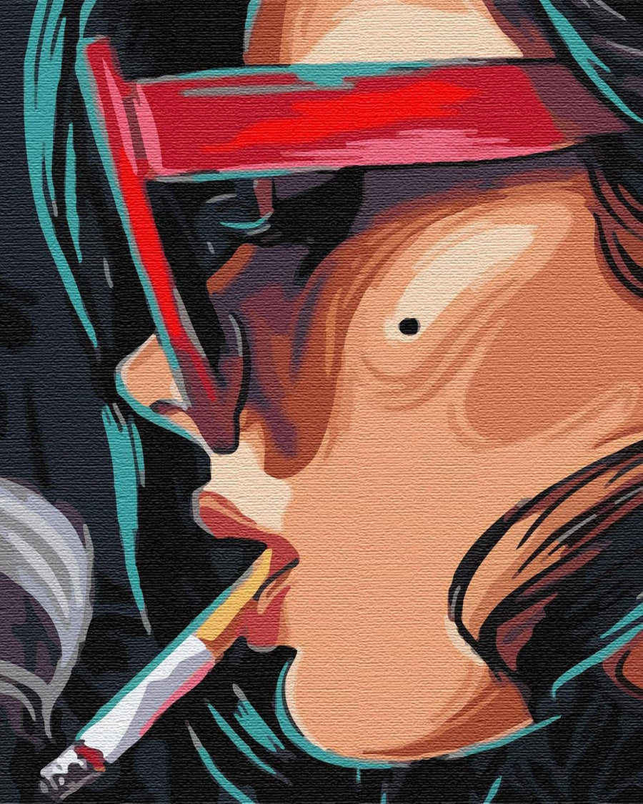 Artnapi Malen nach Zahlen Erwachsene mit Rahmen | DIY Handgemalt | Mädchen mit Zigarette | Kit für A