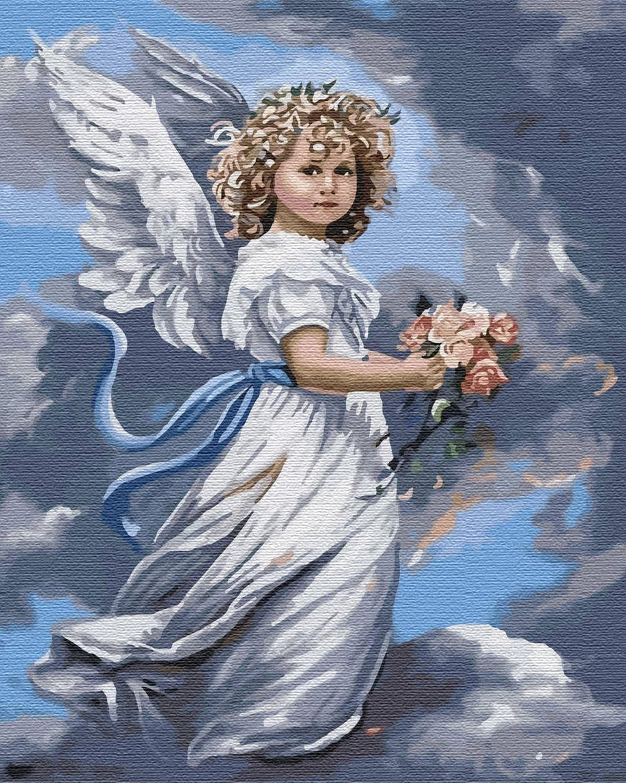 ARTNAPI Malen nach Zahlen Erwachsene mit Rahmen | DIY Handgemalt | Engel mit Blumenstrauss | Kit für