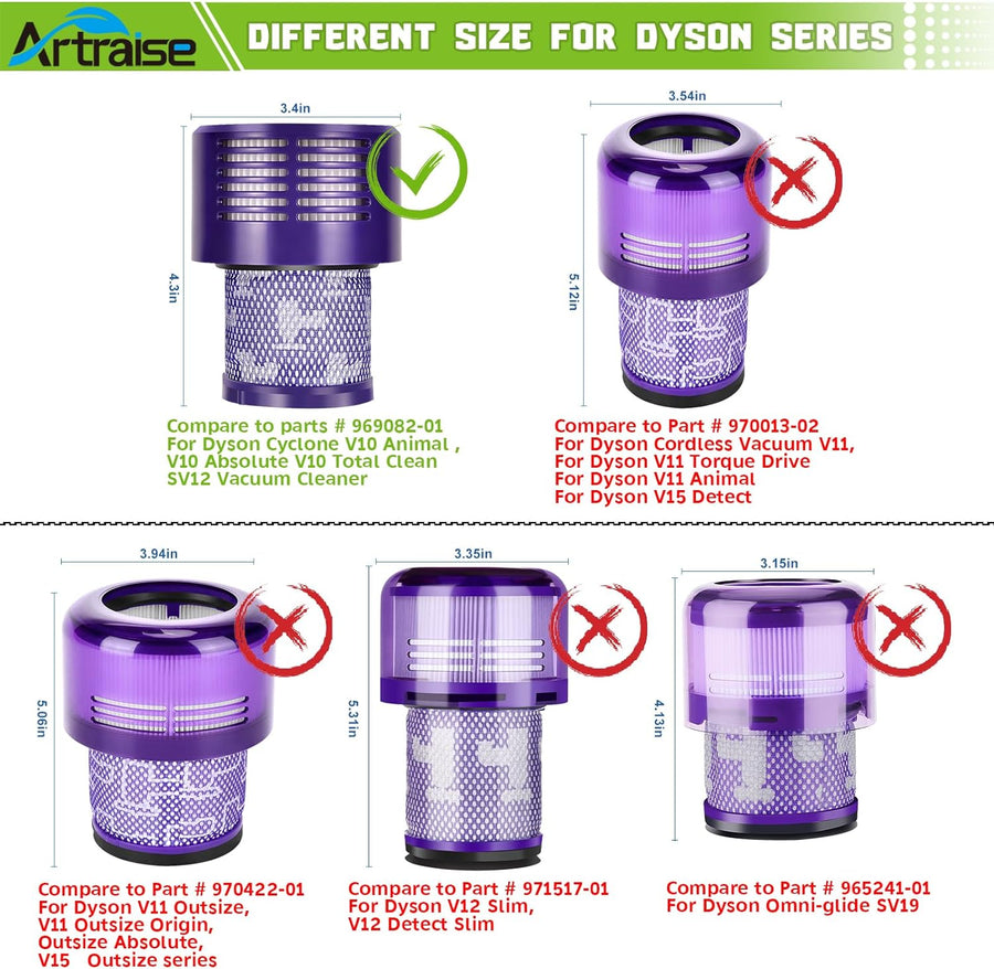 Artraise V10 Filter für Dyson 4 Stück Waschbar Ersatz Hepa Filter für Dyson V10 SV12 Cyclone Animal