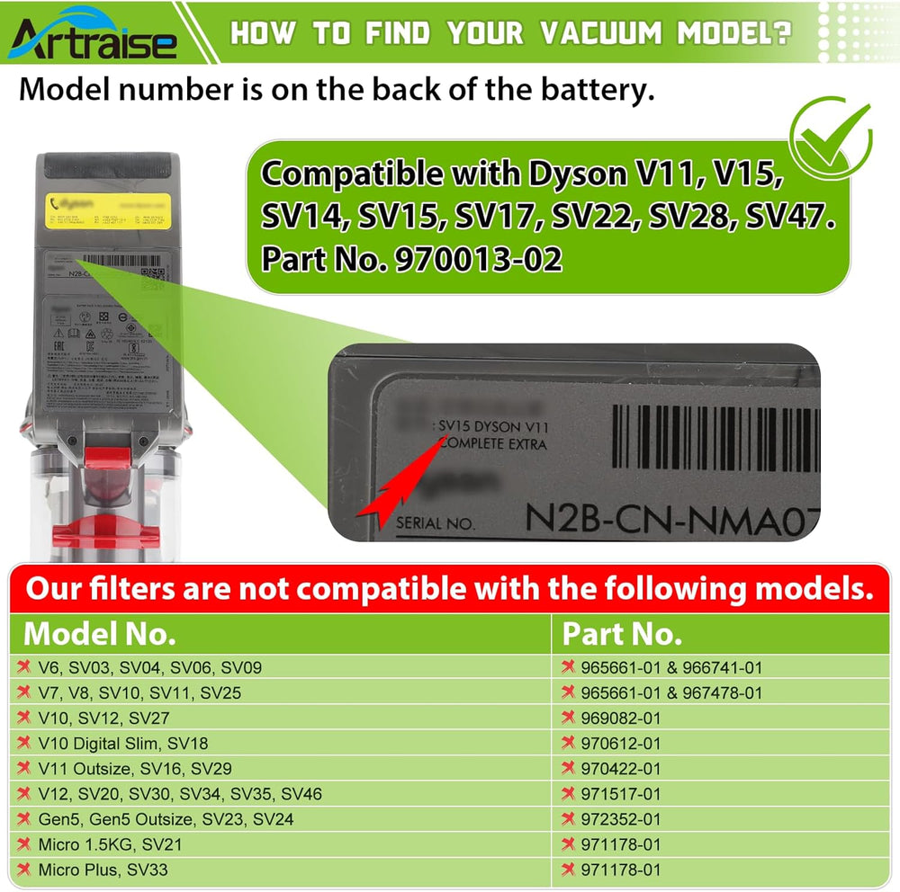 Artraise V11 V15 Filter für Dyson, 3 Stück Waschbar Ersatzfilter für Dyson V11 V15 SV14 SV22 Absolut