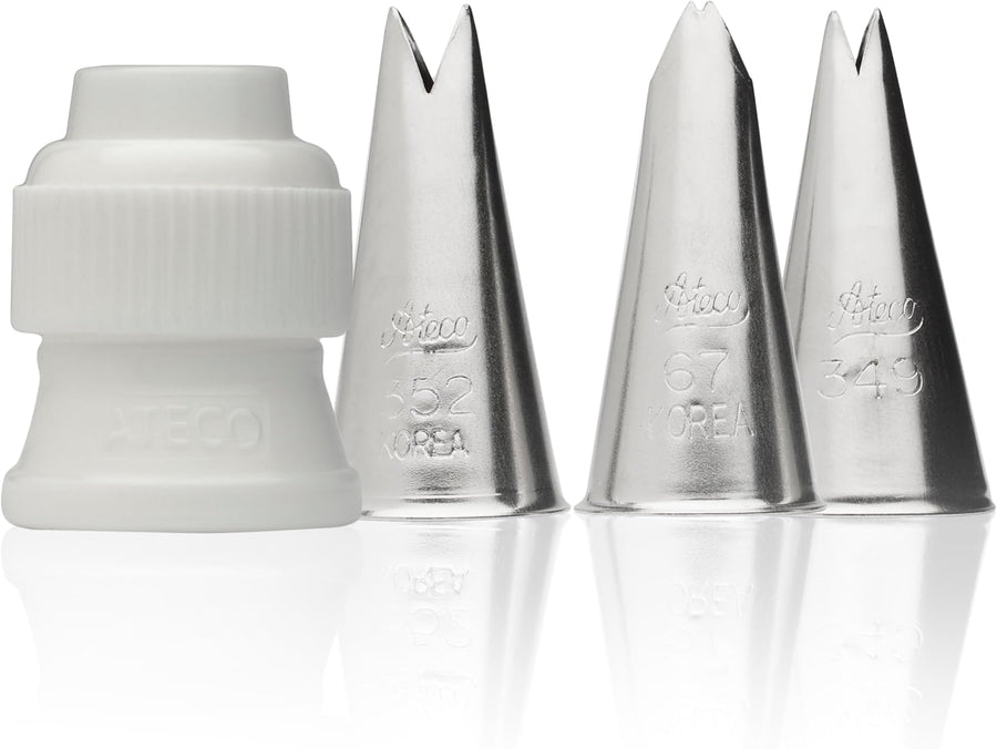Ateco 382 Gebäck-Röhrchen Gebäckröhren-Set, Edelstahl, Weiss/opulenter Garten #382 Leaf Tube Set, #3