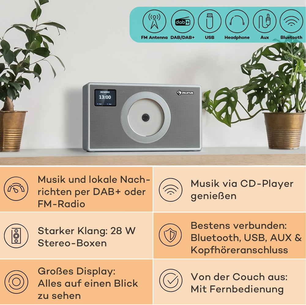 Auna Tragbarer DAB-Radio-CD-Player für Zuhause, FM/DAB/DAB+ Radio mit Bluetooth + AUX, Stereoanlage,