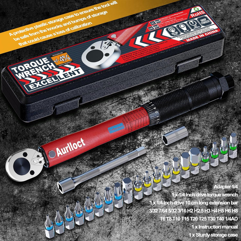 Aurlloct Drehmomentschlüssel 1/4 Zoll 2-24 Nm Satz, Fahrrad & Motorrad, 23-tlg. inkl. Verlängerung m