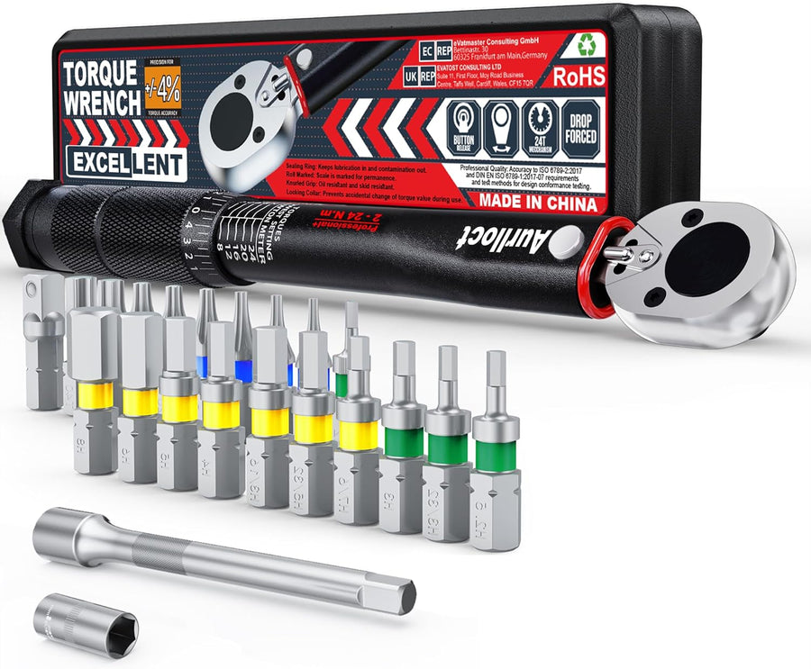 Aurlloct Drehmomentschlüssel 1/4 Zoll 2-24 Nm Satz, Fahrrad und Motorrad, 23-tlg. inkl. Verlängerung