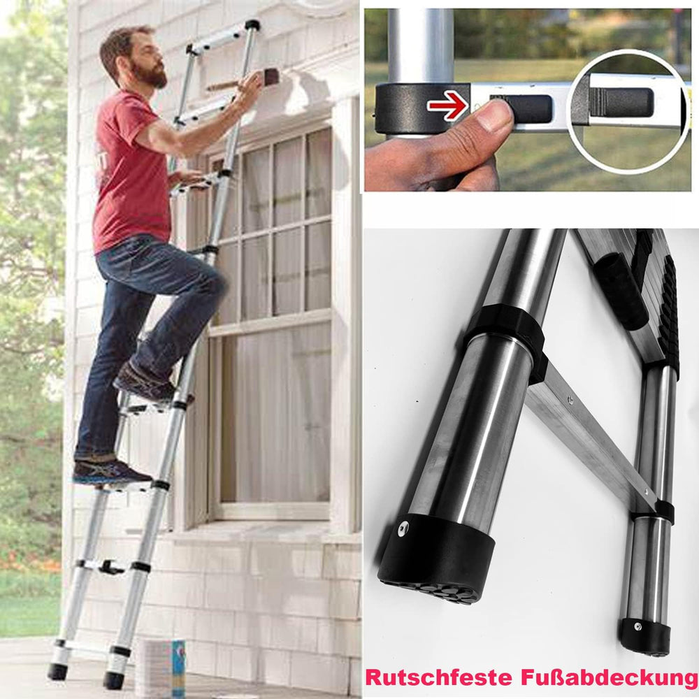 2,6M Teleskopleiter Leiter Ausziehbar Aluminium Teleskop Leiter Klappleiter Stehleiter Rutschfester