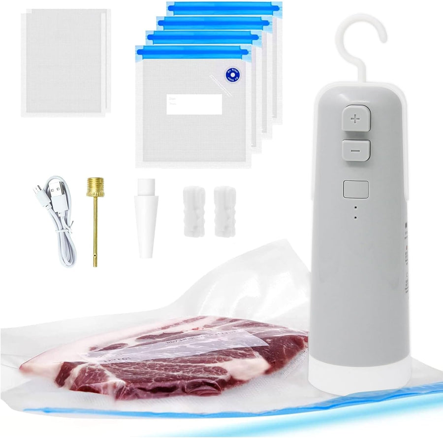 Vakuumiergerät Mini, 4-in-1-Funktion Handvakuumierer Vakuum,Verschluss,Aufblasbar&Öffnen mit 8 Aufbe