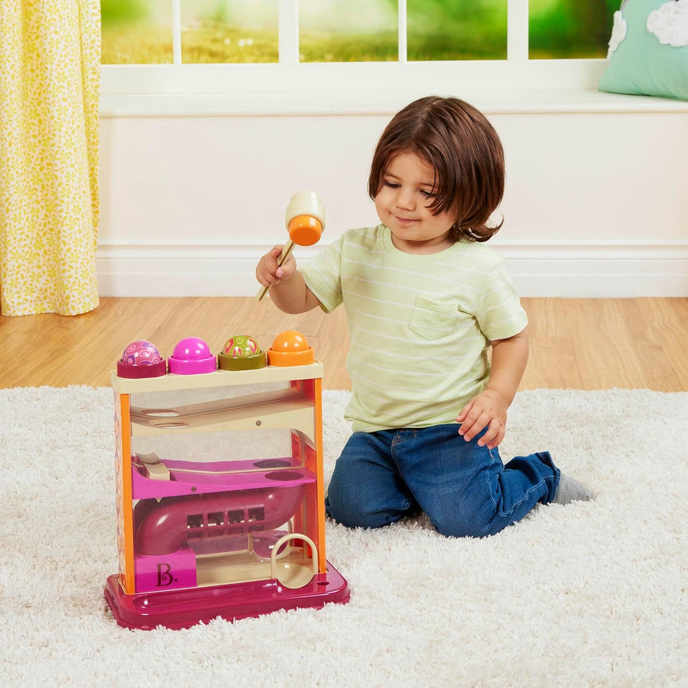 B. toys Kugelbahn Motorikspielzeug – Hammerspiel mit Hammer und 4 Kugeln – Lernspielzeug Hämmerchens