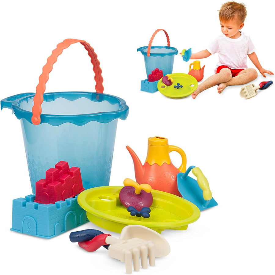 B. toys Sandspielzeug 9 Teile mit Eimer gross – Sandkasten Spielzeug, Strand, Spielplatz mit Schaufe
