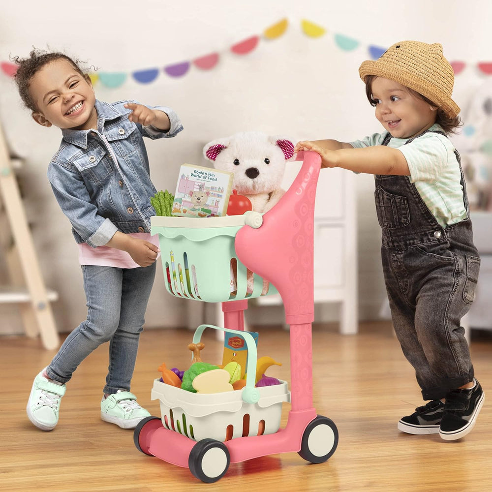 B. toys Einkaufswagen für Kinder mit Spielzeug Einkaufskorb, Essen, Kuscheltier, Bilderbuch – Kinder