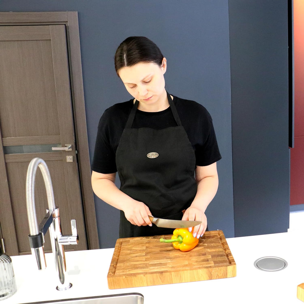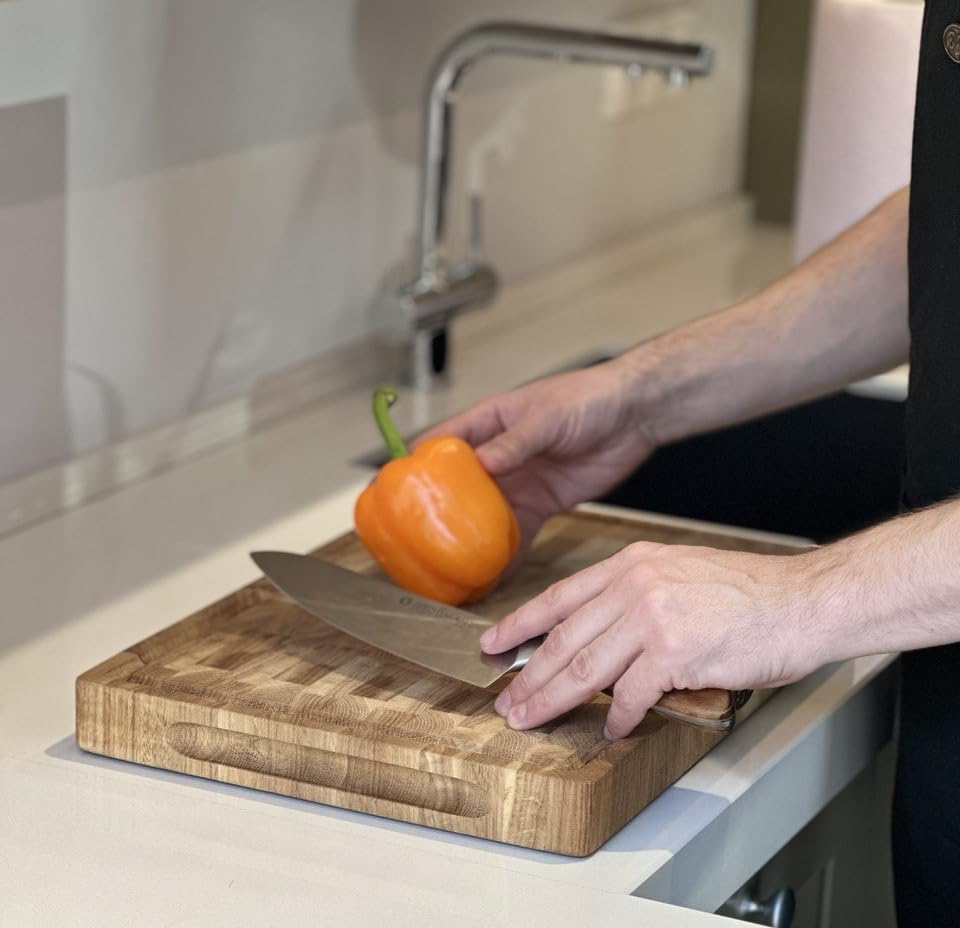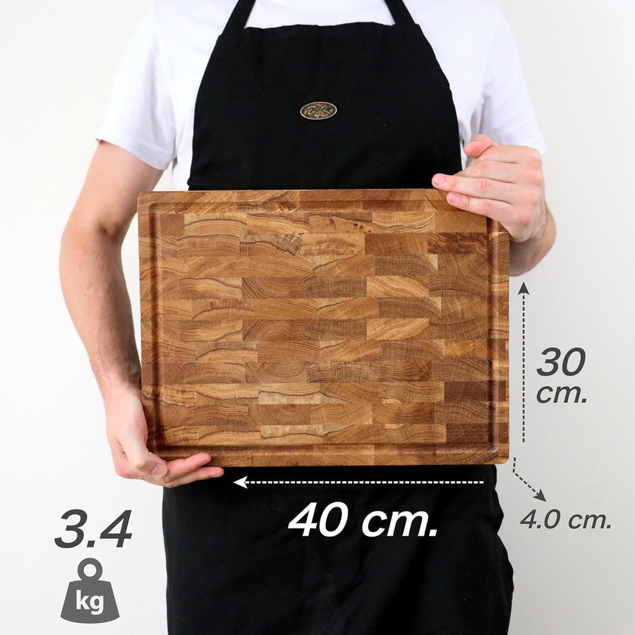 B4K® 40х30х4cm Küchenbrett aus Eiche Stirnholz | Antibakterielles Hirnholzbrett mit Griffen, Silikon