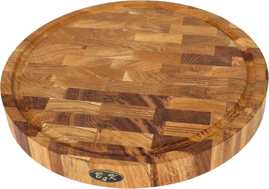 B4K® Schneidebrett aus Eiche Stirnholz 35 × 35 × 4 cm – Massiver Hackblock | Antibakterielles Hirnho