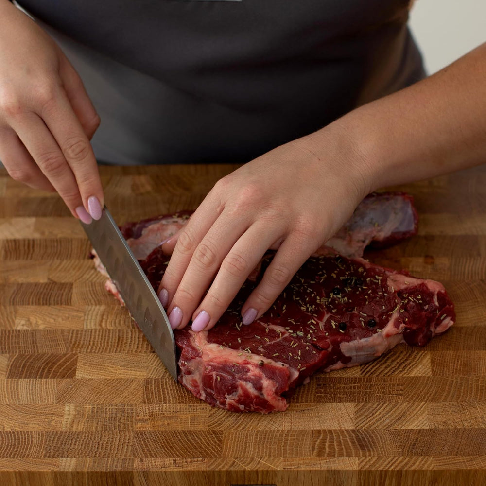 B4K® Steakbrett aus Eichenholz – Servierbrett für Steak & Grillfleisch – Massives Schneidebrett mit