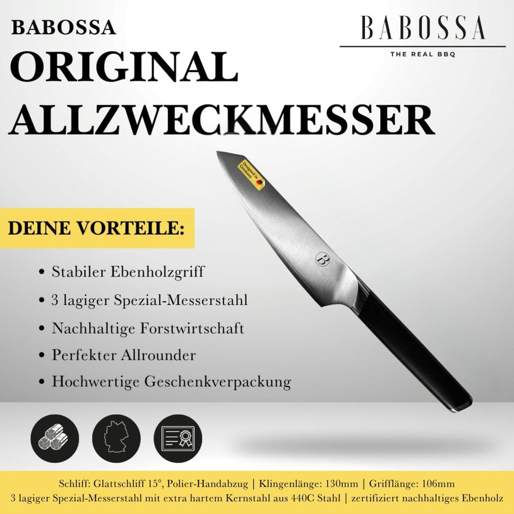BABOSSA® Original Allzweckmesser | Ultra scharfes Allzweckmesser | Klingenlänge 13cm | 3 lagiger Spe