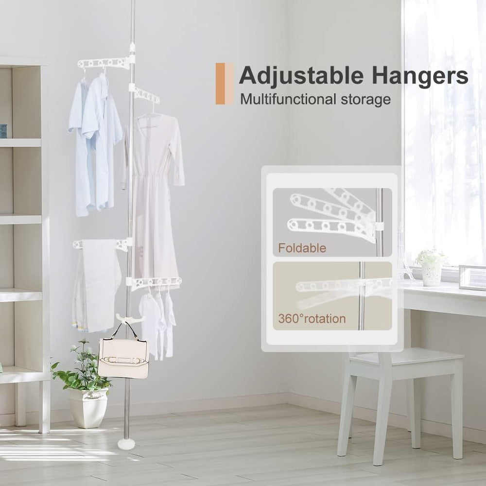 BAOYOUNI 4-Tier Stehend Wäscheständer kleiderständer Teleskopstange Kleiderbügel Organizer Boden bis