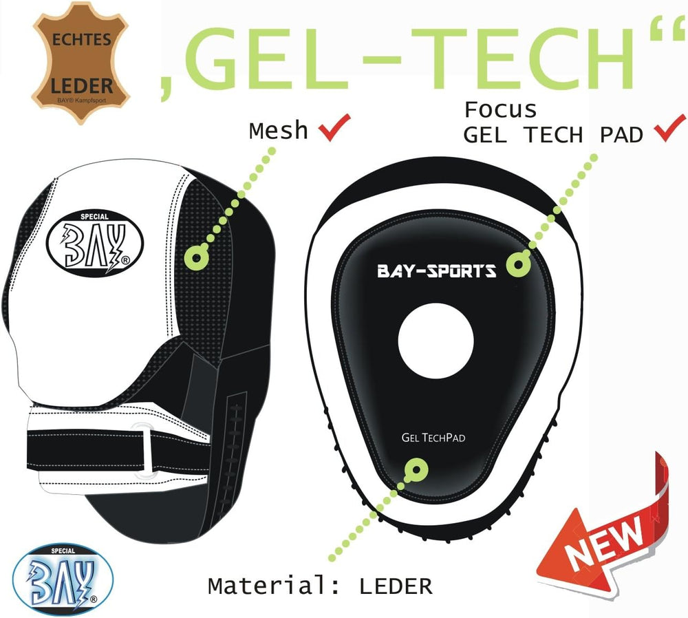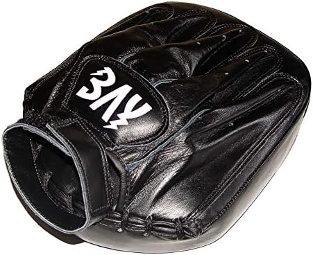 BAY Gel Leder Trainerpratzen mit Ergonomischer Handkontur, Schlagpolster für Kampfsport, Schwarz, 2e