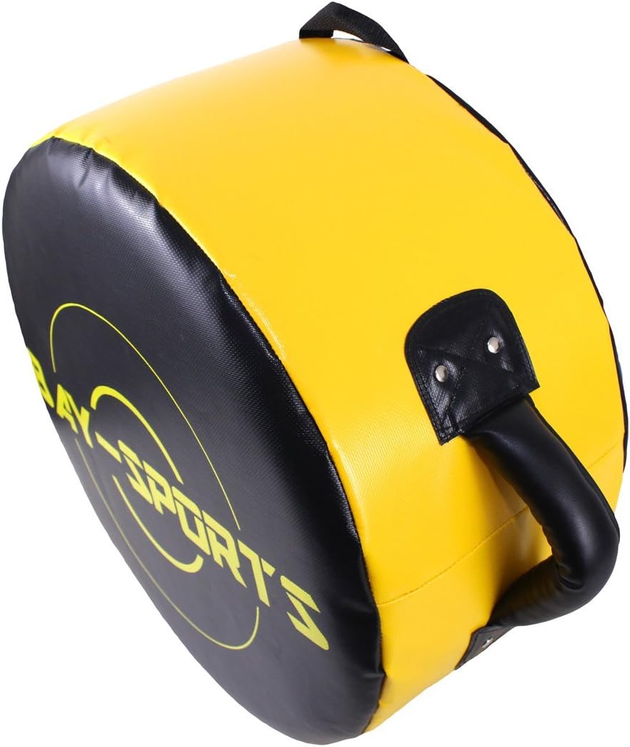 BAY® "UFO RUND 45 x 45 x 20 cm - SEHR STABIL- schwarz/gelb Leder PU Schlagpolster, Schlagkissen, Pra