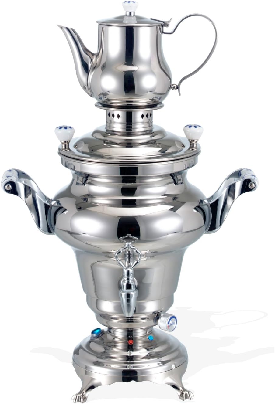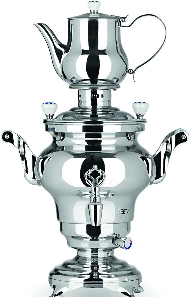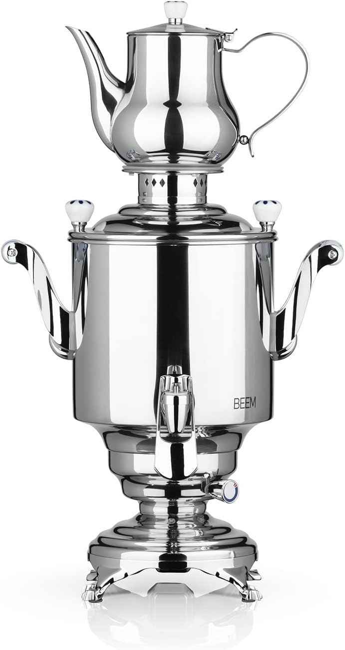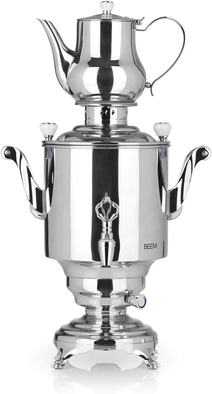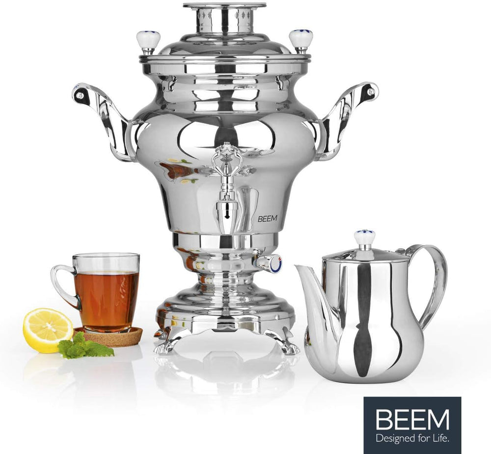 BEEM ROYAL+ Samowar - 15 l | Edelstahl | Türkischer Teekocher elektrisch | 3000 W| 2 l Edelstahl-Tee