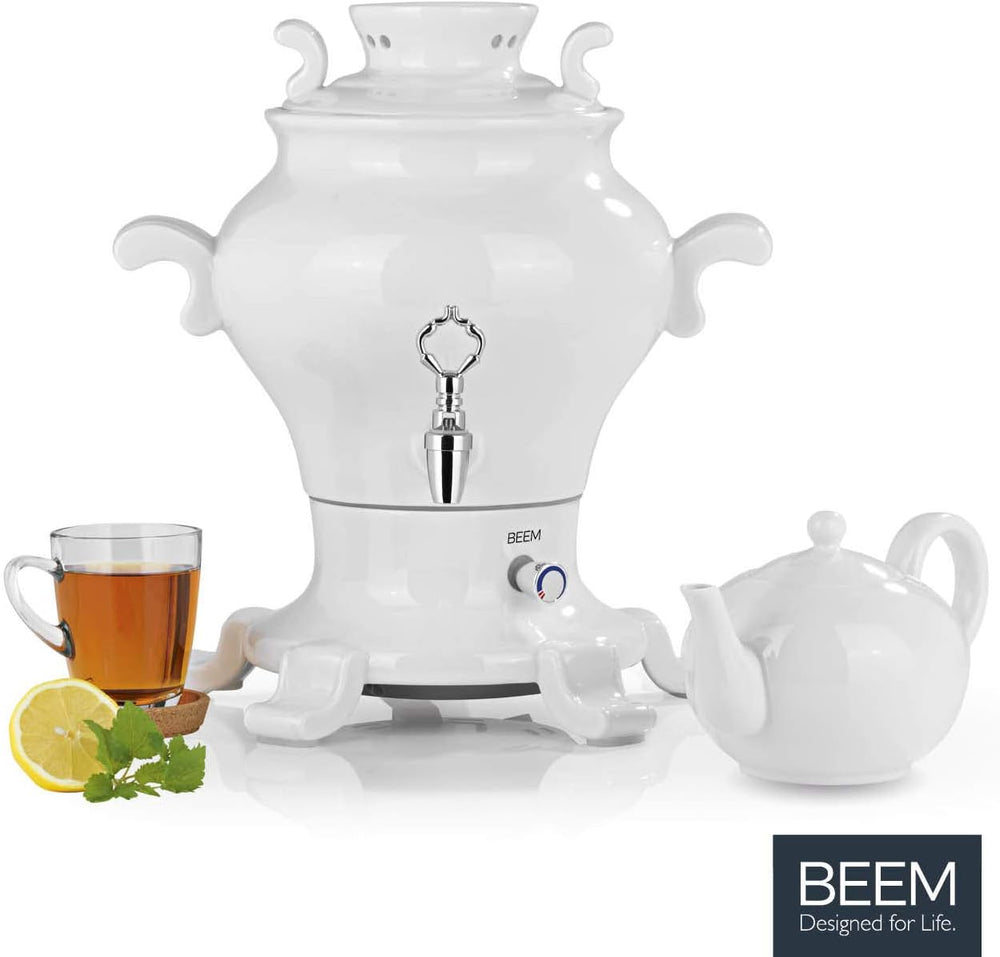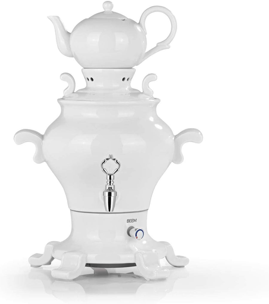 BEEM ODETTE BLANC Samowar - 5 l | Porzellan | 1800 W | 1 L Teekanne mit Sieb Edelstahl | 5 L Heisswa