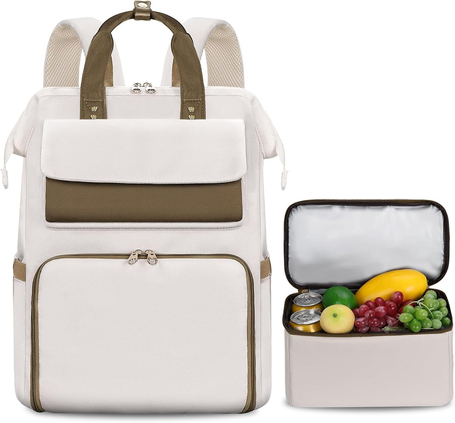 BERTASCHE Lunch Rucksack, Laptop Rucksack Damen 15,6 Zoll mit Isoliertes Kühltasche, 2-in-1-Arbeitsr