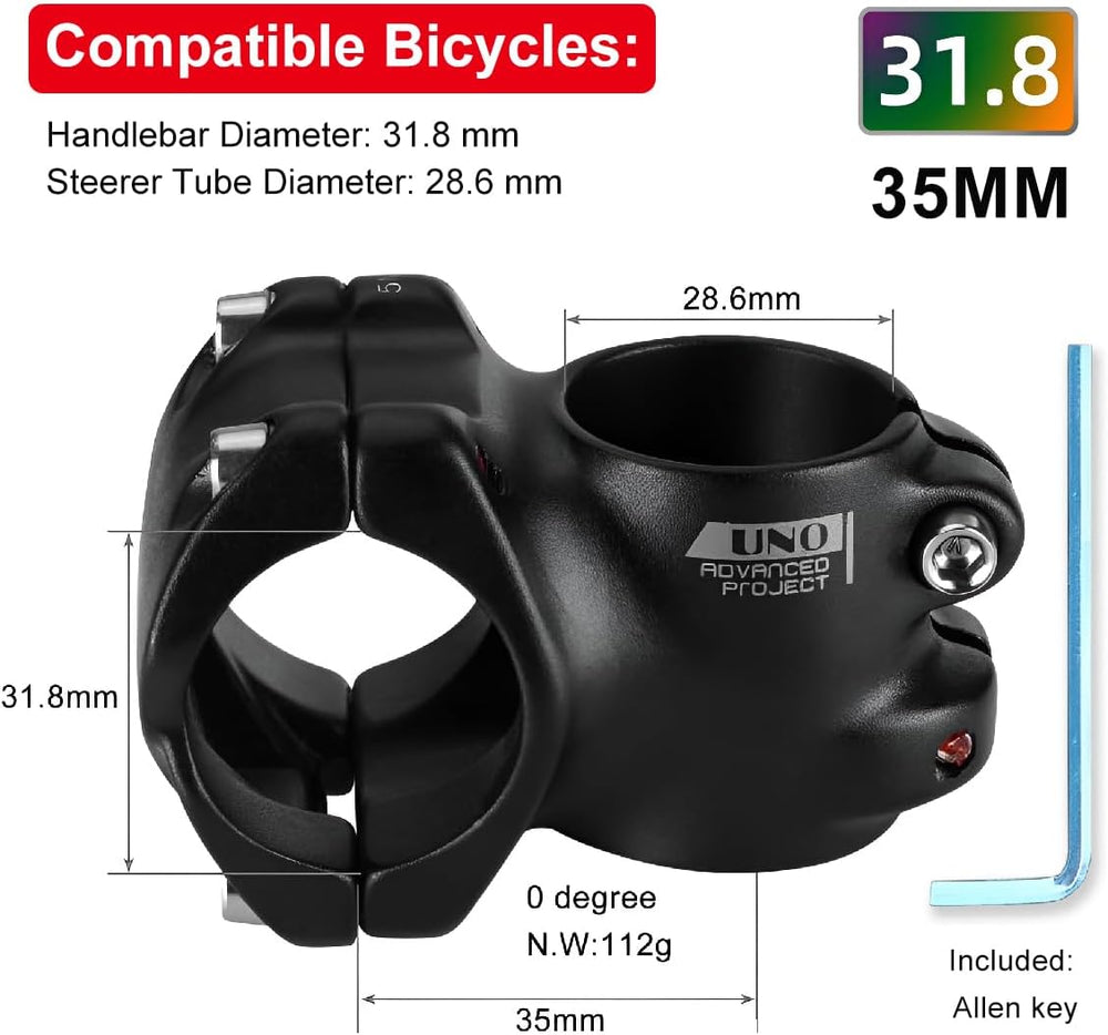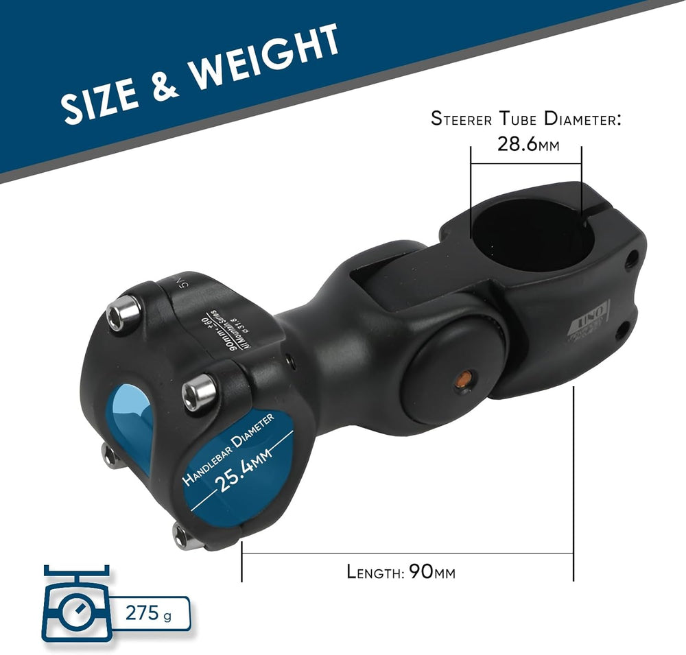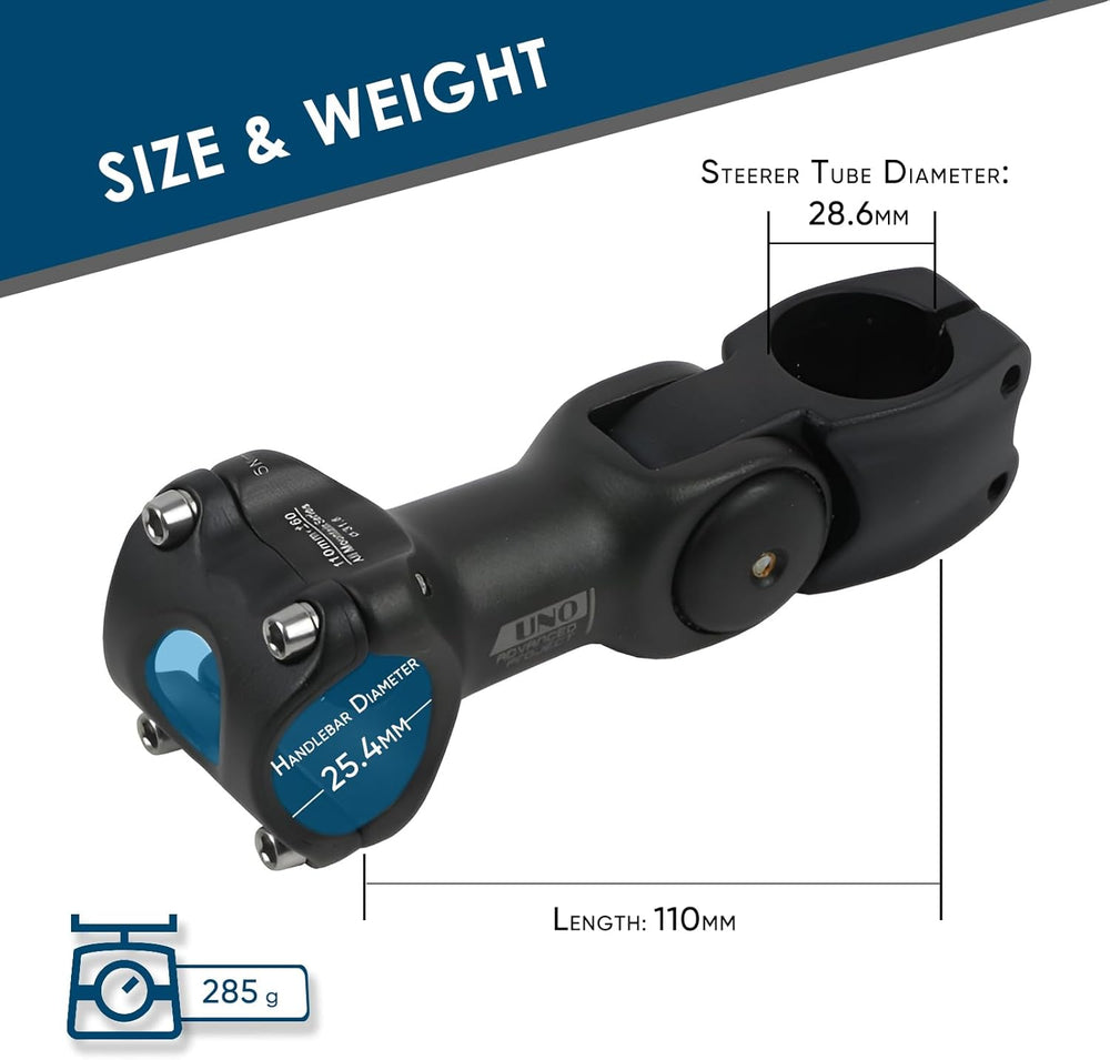 BESNIN Einstellbarer Fahrradstiel 0-90 Grad Universal 25.4mm 31.8mm für Lenker 110mm/145mm Vorbau, E