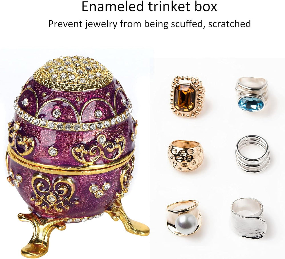 Faberge Ei Schmuckkästchen,Zinklegierung Vintage Handbemalt Einzigartiger Aufklappbarer Schmuckringh