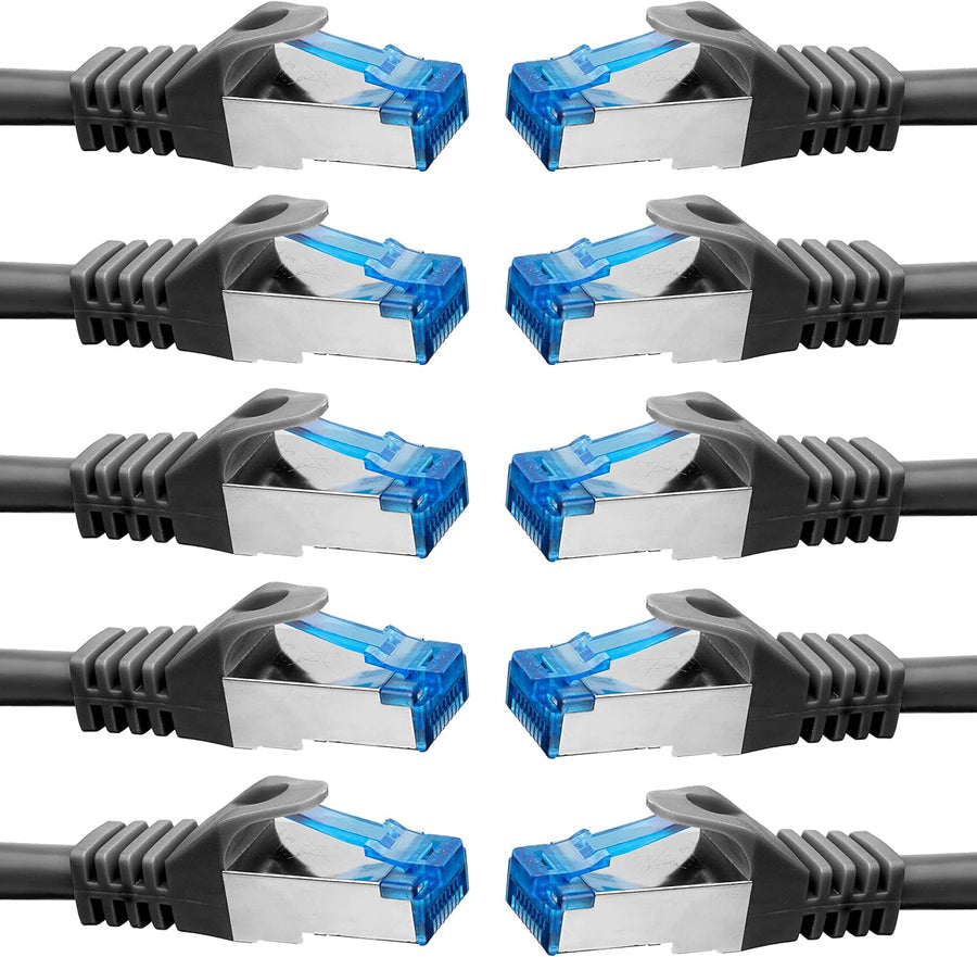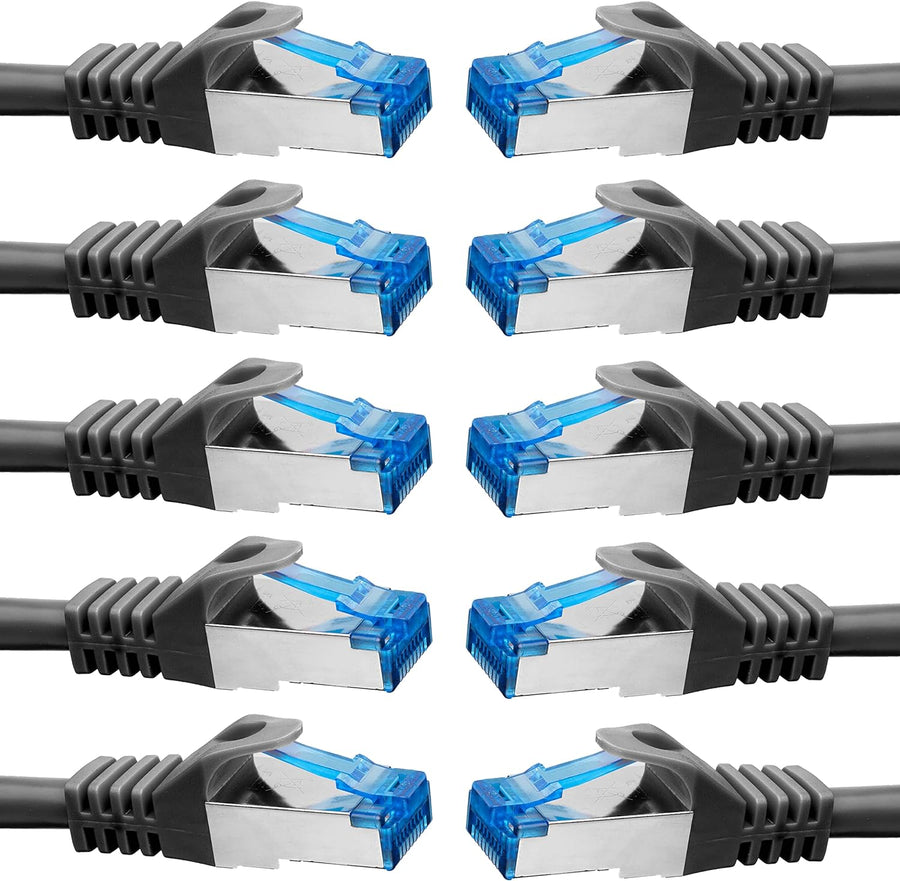 BIGtec - 10 Stück - 10m CAT.7 Gigabit Patchkabel Netzwerkkabel schwarz Kupferkabel Patch Ethernt LAN