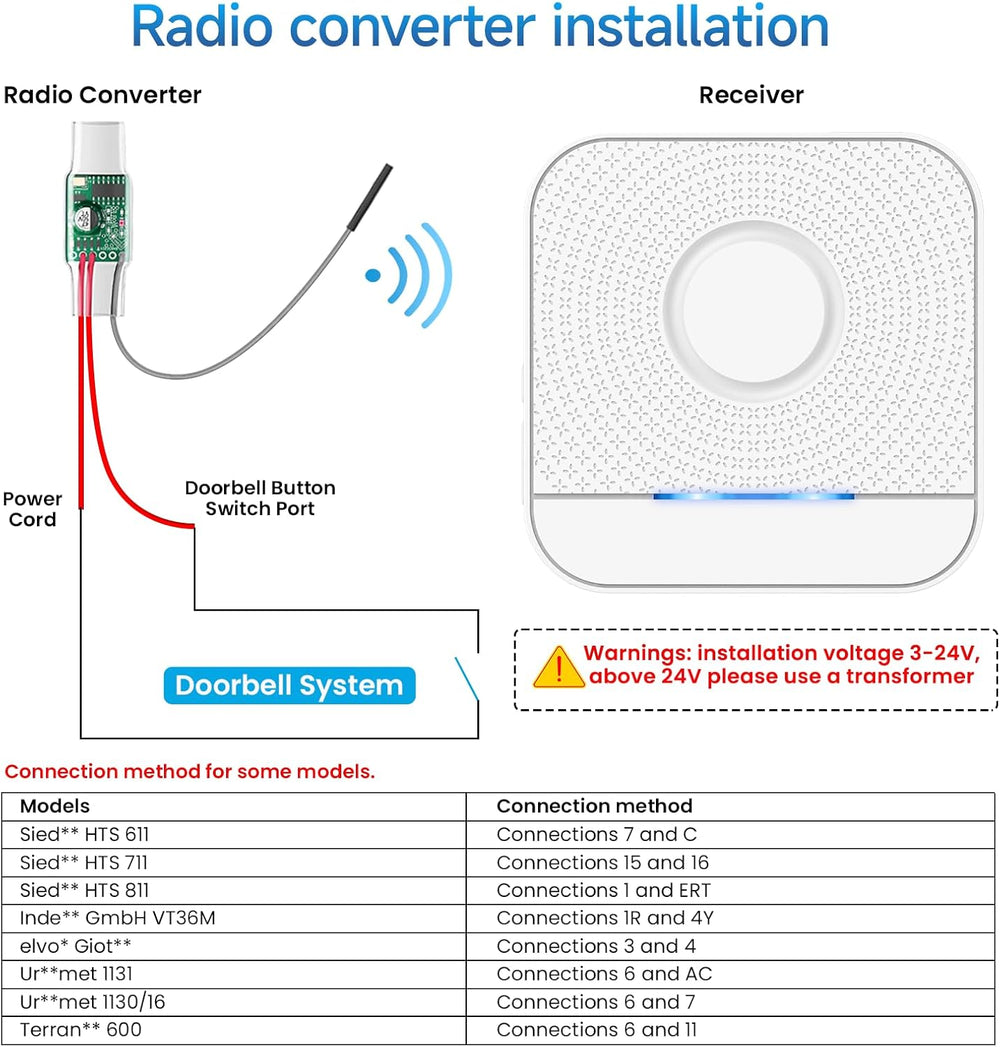 BITIWEND Funksignal Weiterleitung Funk Erweiterung Set 3-24V AC/3V DC Funkkonverter Türklingel und G