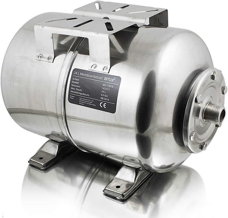 BITUXX® Edelstahl Membrankessel 24L Druckkessel Hauswasserwerk Kessel inkl Membran 1 Zoll Anschluss