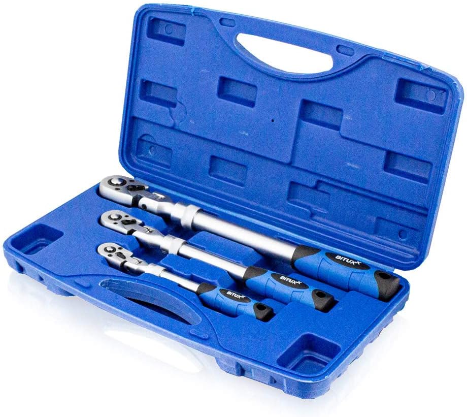 Bituxx 3 tlg Teleskop Gelenk Ratschen 1/4 3/8 1/2 90° Knarre ausziehbar Umschaltknarre Set