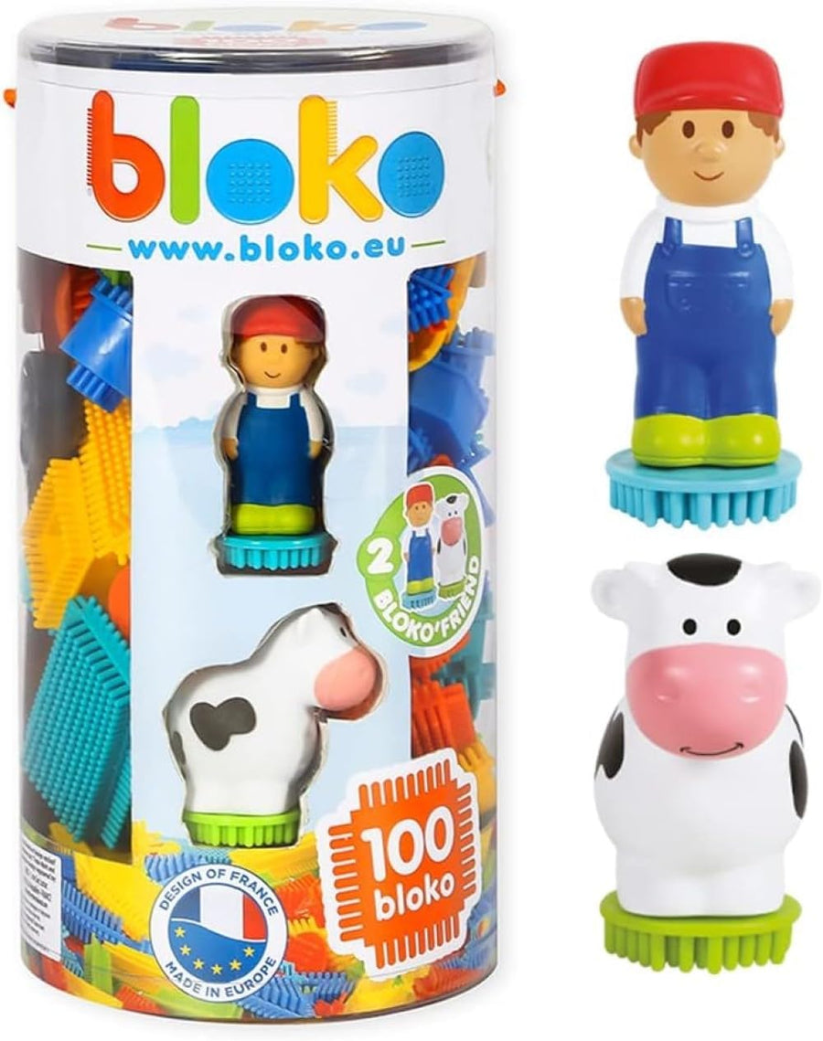 BLOKO - 100 Tube mit 2 3D-Figuren Bauernhof - Ab 12 Monaten Konstruktionsspielzeug 1. Alter - 503662