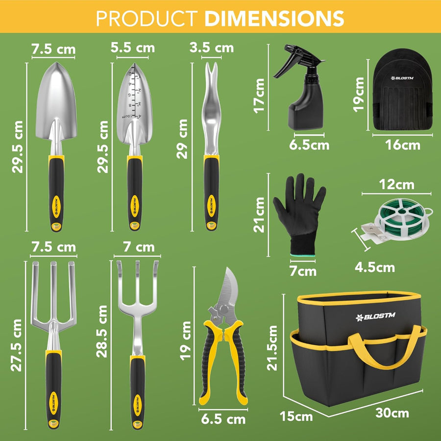 BLOSTM Gartengeräte Set 11-Teilig - Robuste Gartenwerkzeug Set mit wasserdichte Gartenwerkzeug Tasch