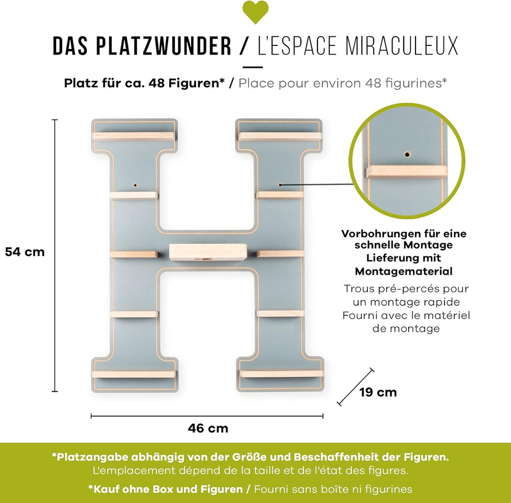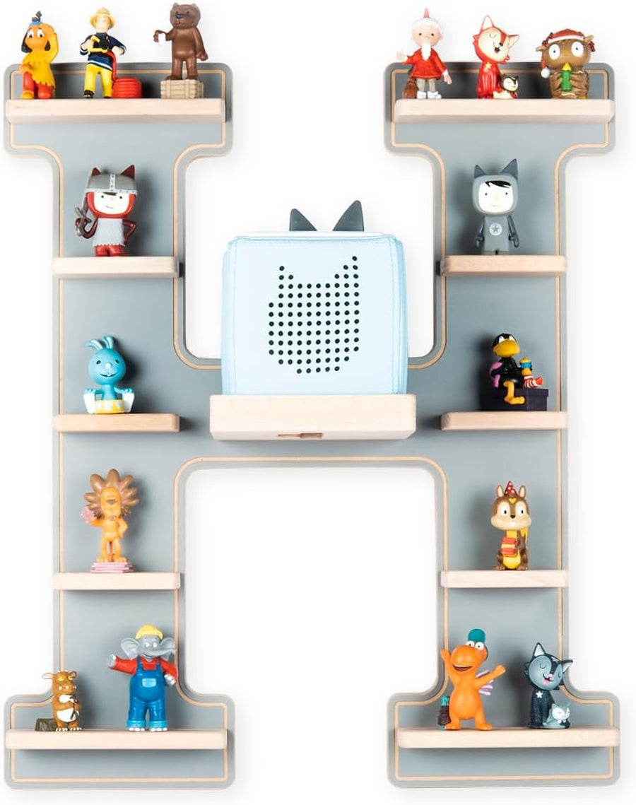 BOARTI das Original Kinder Regal Buchstabe H in Grau - geeignet für die Toniebox und ca. 48 Tonies -