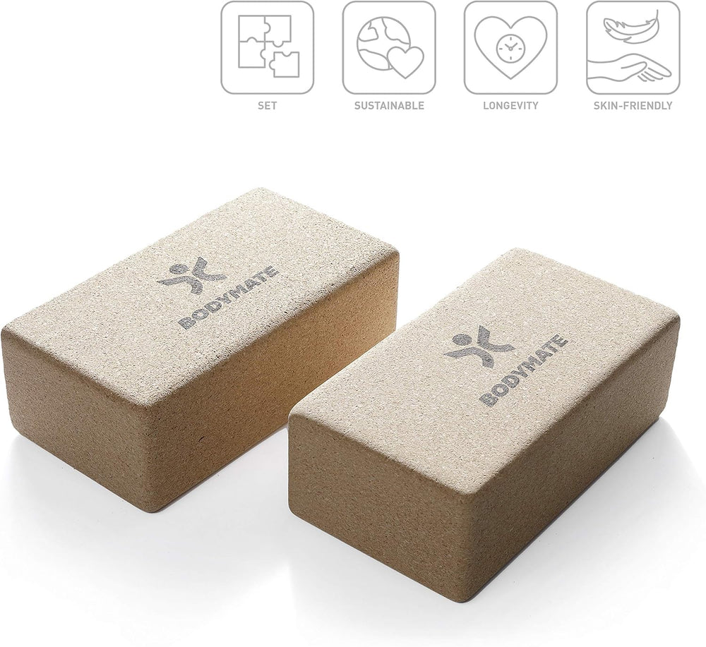 BODYMATE 2er Set Yoga Block aus Kork, Yogablöcke, Korkblock für Yoga, aus 100% ökologischem Kork, Tr