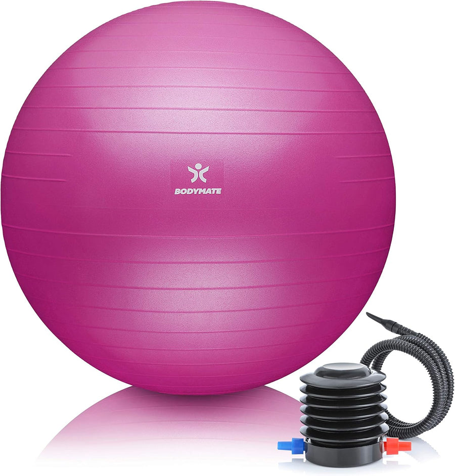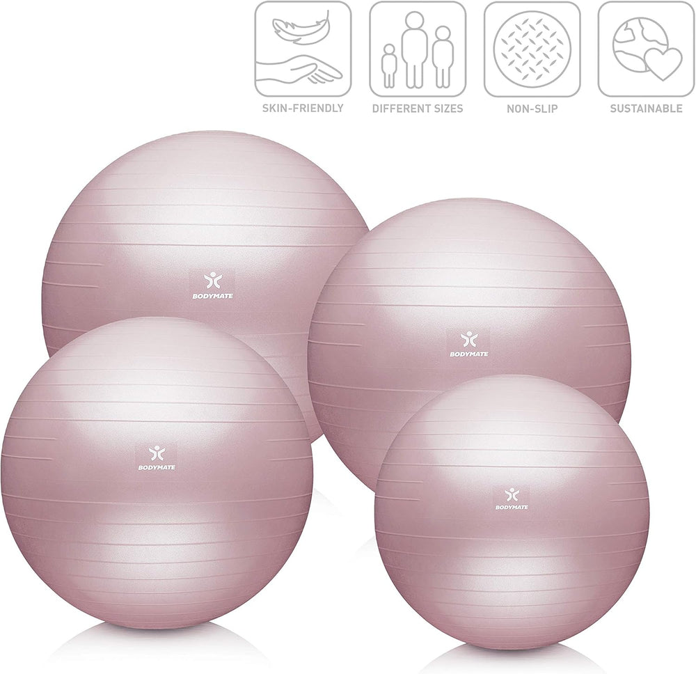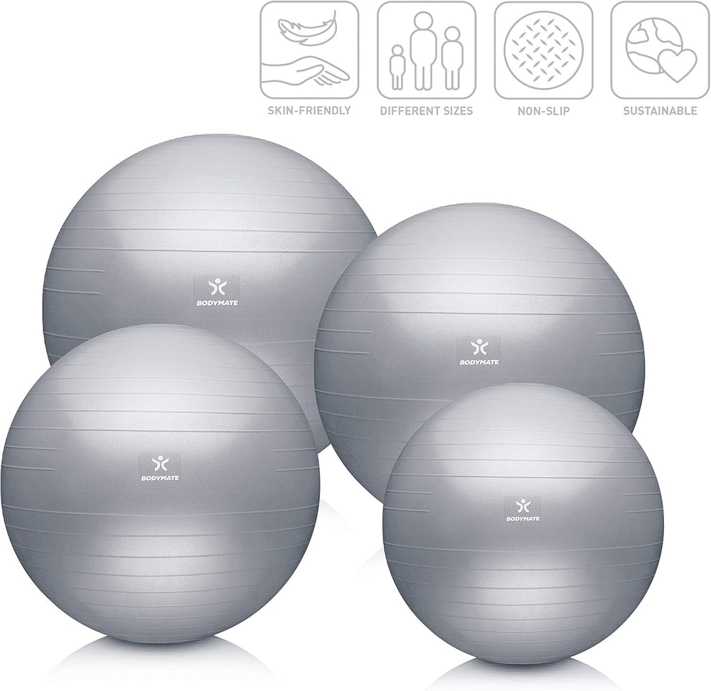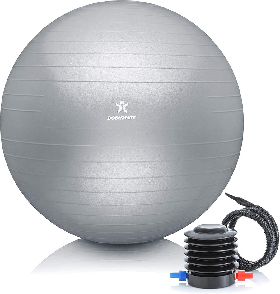 BODYMATE Gymnastikball Sitzball Trainingsball mit GRATIS E-Book inkl. Luft-Pumpe, Ball für Fitness,