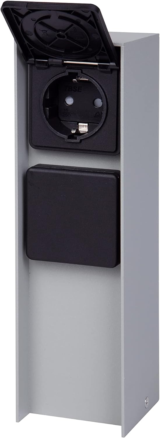 Bold 19530 Abano Aussen-Steckdose-Garten (Steckdosen-Säule) mit 2-Fach Stecker in Hellgrau (IP44 Out