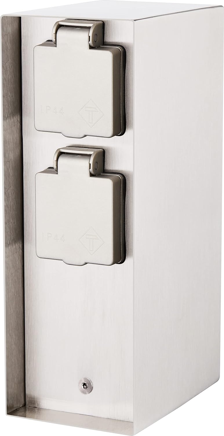 Bold Orio Aussen-Steckdose-Garten (Steckdosen-Säule) mit 4-fach Stecker-Verteiler in Edelstahl (IP44