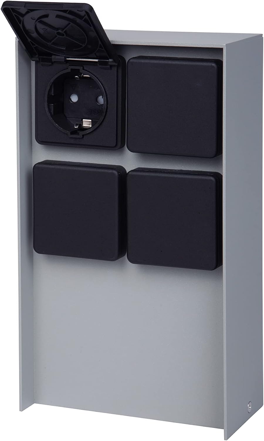 Bold 19578 Abano Aussen-Steckdose-Garten (Steckdosen-Säule) mit 4-Fach Stecker in Hellgrau (IP44 Out