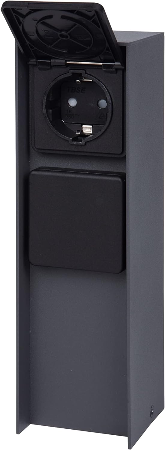 Bold 19523 Abano Aussen-Steckdose-Garten (Steckdosen-Säule) mit 2-Fach Stecker in Anthrazit (IP44 Ou